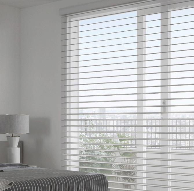 The conventional Sheer Horizontal Shade enhances any environment with a cozy, attention-commanding look. Rotate the vanes slightly for a softly veiled view of the outside, or fully to experience total privacy. With vanes in light-filtering and room-darkening textiles, this unmatched shade provides both UV protection and heat management.